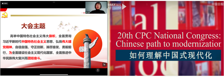 全体师生党支部开展了“学习二十大,奋进建艺人”主题党日活动,内容丰富,形式生动:重温入党誓词、二十大报告和党章诵读、二十大知识竞答及参观党性教育基地网上展馆等。