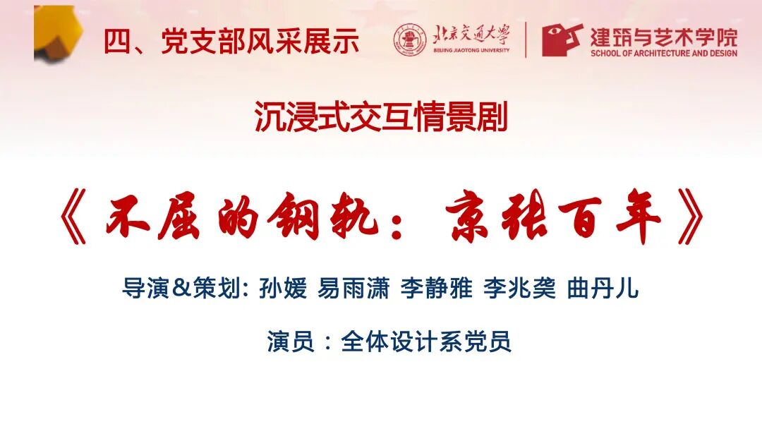 设计系党支部全体党员,以沉浸式情景剧为舞台,溯百年京张!融合创新技术,唤醒历史记忆,让铁轨上的荣光穿越时空,辉映新时代的文化自信与奋斗征程!