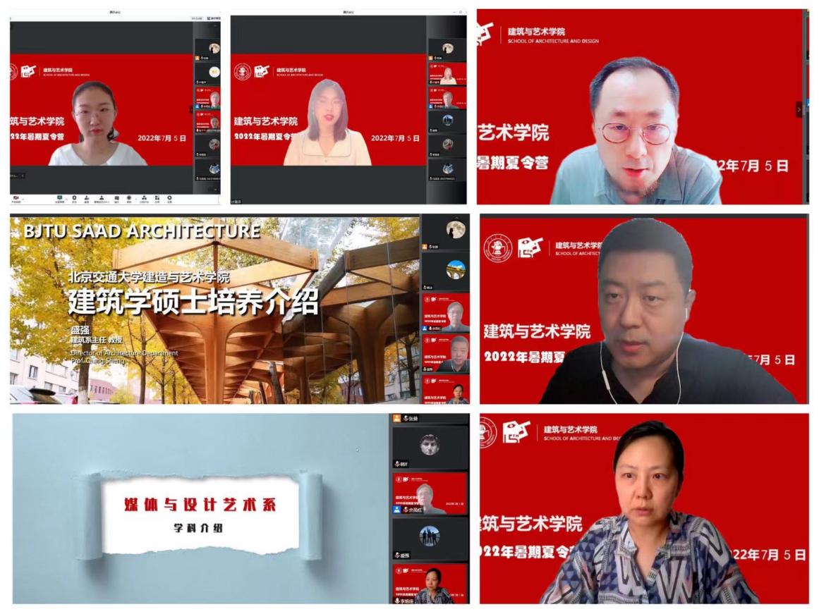 7月5日上午,线上开营仪式隆重举行。建艺学院院长韩冰、副院长佘高红、建筑系系主任盛强、媒体与设计艺术系副系主任李旭佳、城乡规划系学科教授韩林飞出席开营仪式,仪式由佘高红副院长主持。