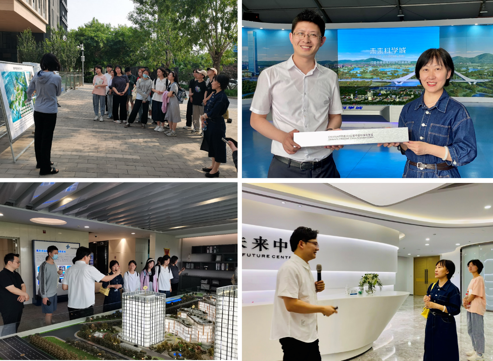 师生一行前往未来科学城展厅进行参观学习,在展厅中,徐处长向大家讲解科学城的总体理念、策略和发展方向,重点了解了快速交通体系、TOD开发和保障房建设。随后建艺学院师生乘坐大巴实地参观未来科学城园区,并来到未来科学城星际花园,了解商业开发项目的开发、投资及运营模式,并进入样板办公楼实地参观学习。