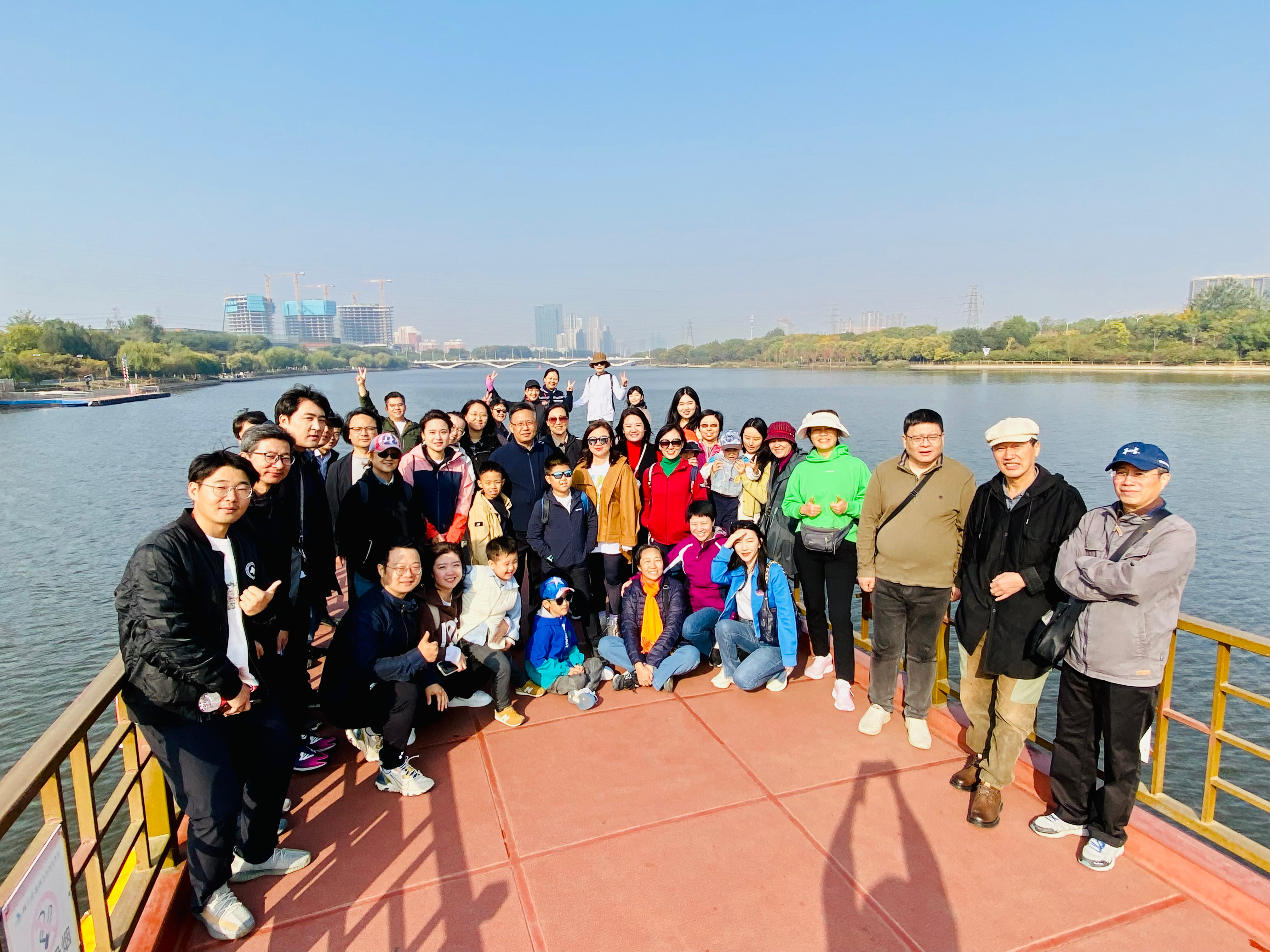 秋高气爽,云淡风轻。老师们首先乘坐观光船游览了大运河文化景区,远眺两岸,高楼鳞次栉比,树木郁郁葱葱,绿水青山和现代生活交相辉映,呈现了首都副中心美好生活的合鸣。游船缓缓在大运河上前进,各式风格的桥梁,横跨运河,宛若长虹,连接着北京的历史与当下。