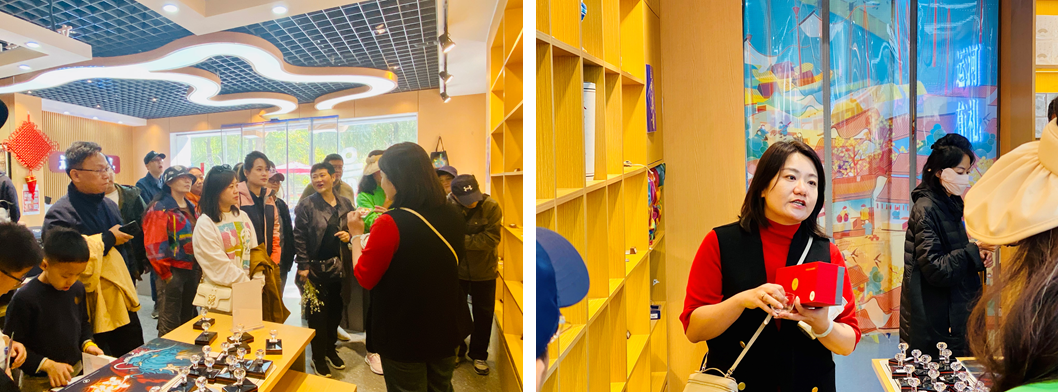 游船游览结束后,在通州区园林绿化局相关负责同志陪同下,老师们步入植被茂盛、规划有致的生态森林公园,公园物种丰富,鸟语花香,听着魏老师一路讲解大运河文化旅游景区打造“一环线五片区”亮点提升工程,照亮古今同辉北京城市副中心的建设历程,老师们登上月岛闻莺观景平台,远眺对岸北京市政府和商业区,首都副中心的市容风貌映入眼帘,大家纷纷感叹通州大运河古今之际和厚重的历史和宜人的环境。随后,老师们来到大运河景区文创店,看到了由98堂 师生设计团队设计的吉祥物“大运”和潞河督运图等具有鲜明大运河历史的文化衍生产品。
