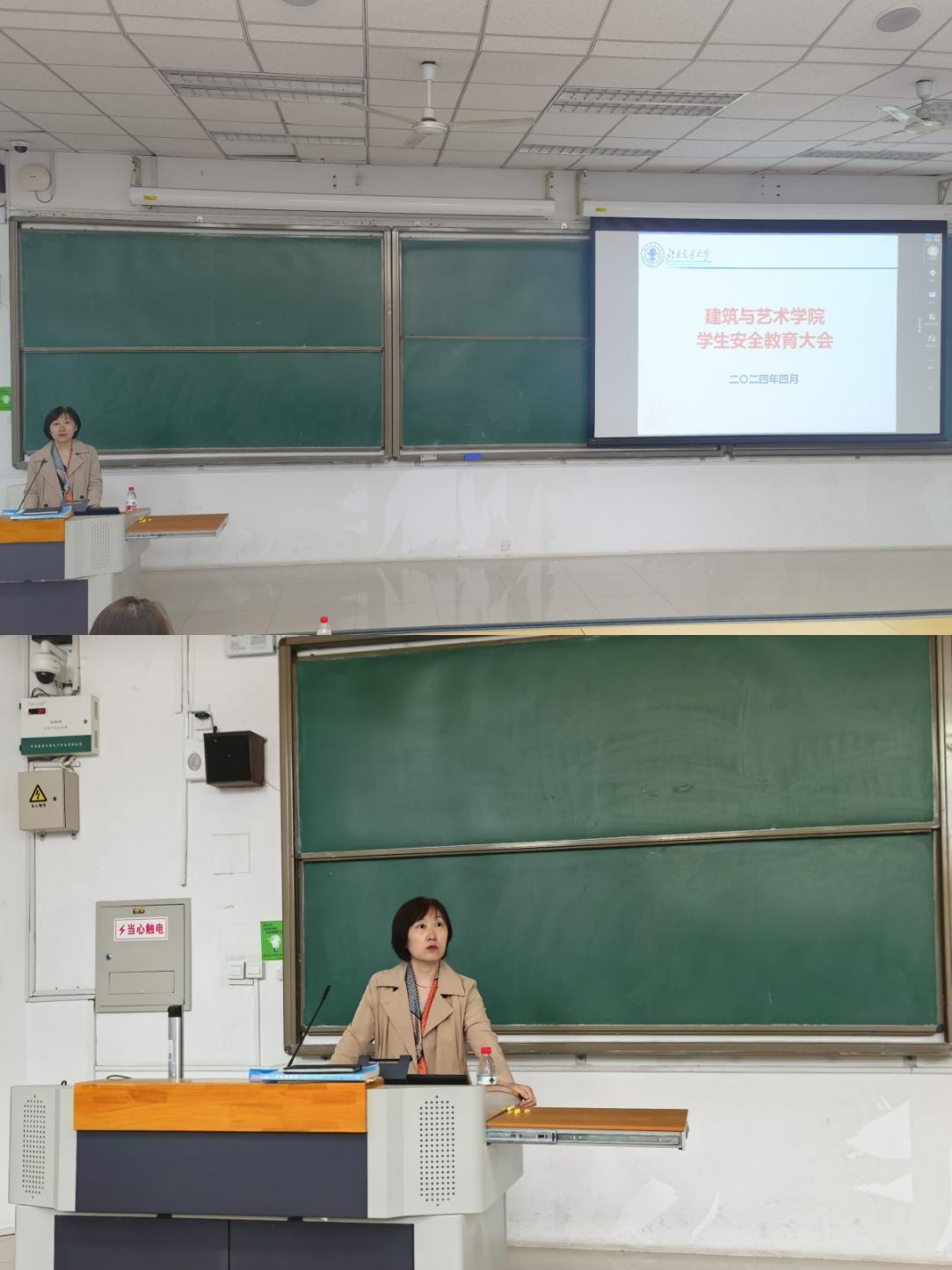 2024年4月23日,建艺学院联合保卫处在思源108举办安全教育大会。保卫处副处长吴斌、建艺学院党委副书记刘萍、全体辅导员出席会议,学院各班班长、生活委员和全体宿舍长参加。会议由建艺学院学工办主任张京主持。