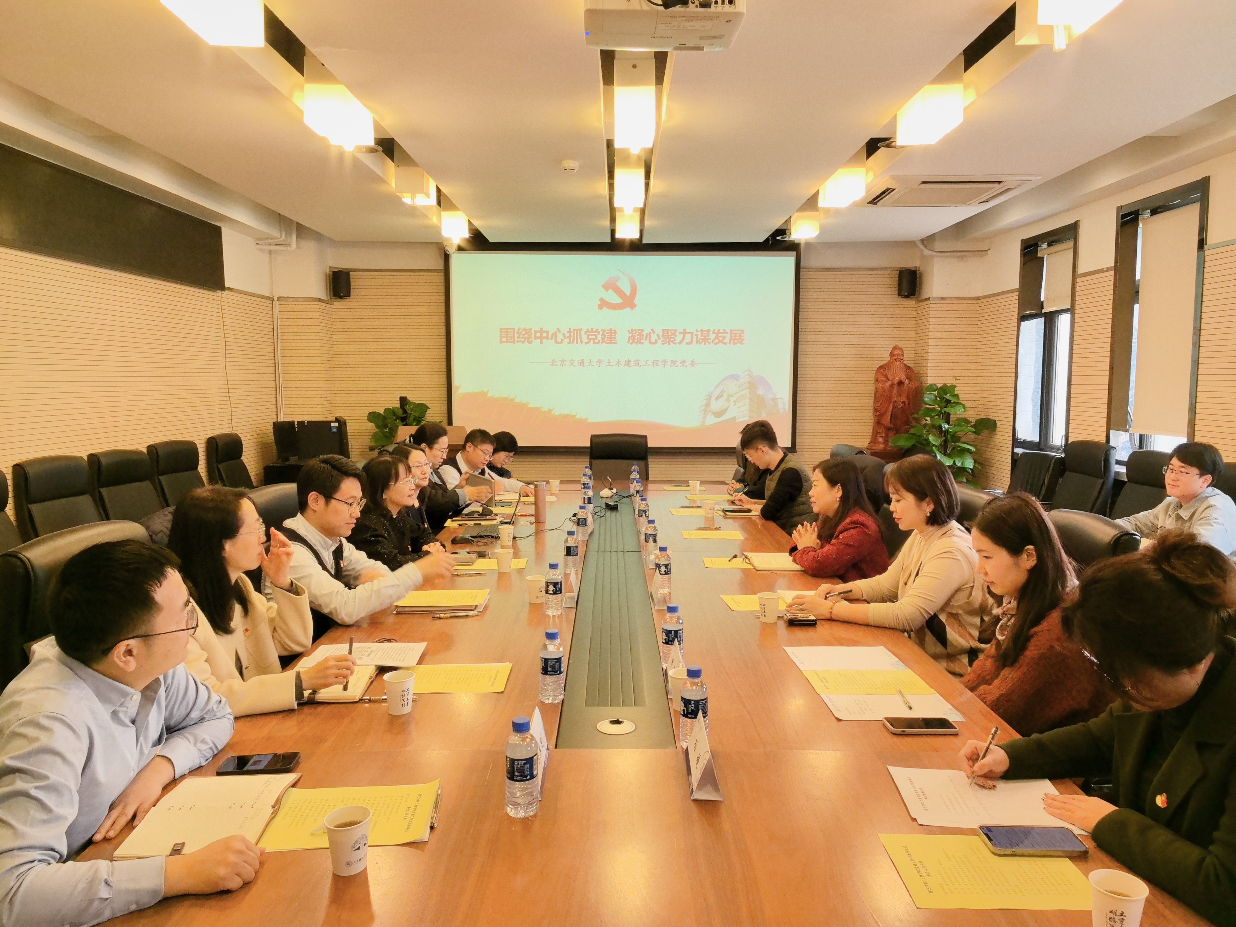 为深入贯彻党的二十大精神,落实新时代党的建设总要求,进一步提升党建工作质量,促进党建工作与学院中心工作的深度融合,建艺学院于11月8日赴土建学院开展“聚焦核心,共谋发展” 党建工作调研交流会。土建学院党委书记白雁,建艺学院党委书记秦思阳,土建学院党委副书记陈博,土建学院党委副书记、副院长周墨臻,以及两院学工办主任、教师党支部书记、学生辅导员和专职组织员等出席了会议。