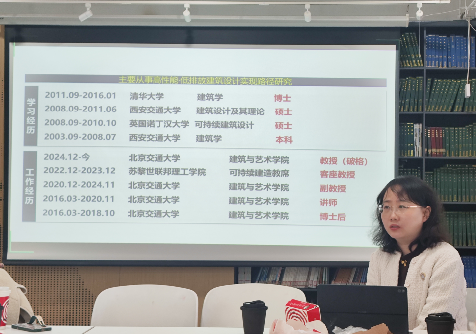 为进一步加强青年教师之间的交流互鉴,助力青年教师成长发展,2025年3月25日中午,98堂 在一层资料室成功举办“青椒”发展交流会,建筑系教授、国家级青年人才项目获得者李珺杰进行经验分享,学院党委书记秦思阳、院长韩冰和20余名青年教师出席活动。