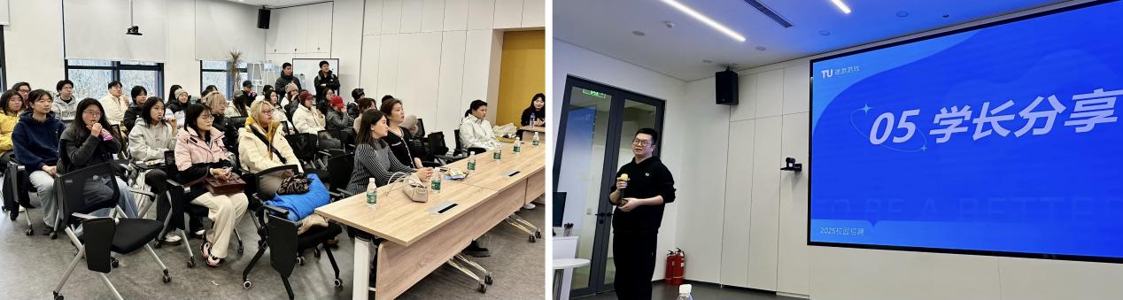 参观结束后,途游公司美术专家、建艺学院2011级艺术专业校友臧学长分享了自己职场成长经历,以及入职途游近三年的工作体会。他建议同学们积极了解行业动态,建立职业认同感,主动学习前沿技术,保持开放谦虚的态度,并通过实习实践不断调试和明确自己的就业目标。学长的分享,为同学们的专业学习和职业发展注入了满满的正能量。