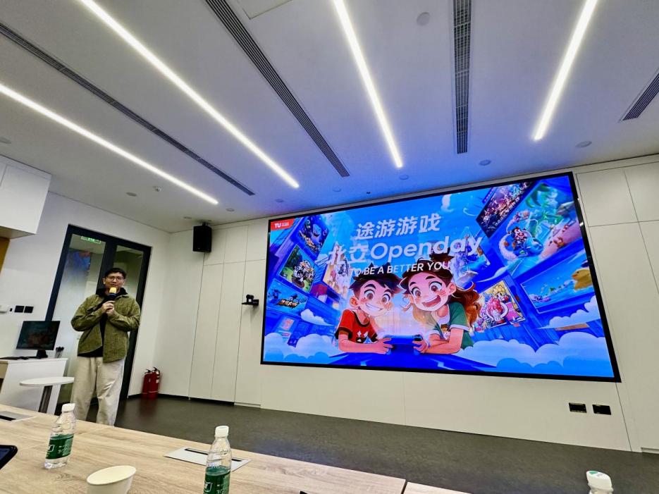 当日下午,在公司招聘负责人许小阁,校招负责人吴凡的引导下,师生一行有序走进途游公司,开启了一场游戏行业的探索之旅。吴凡详细讲述了途游公司的创立背景、发展历程,并深入解读了公司的企业文化和核心价值观,充分展现了途游公司在业界的竞争力和发展潜力。学生们置身于宽敞舒适的办公环境,感受着忙碌而有序的工作氛围,以及充满创意的设计空间,不禁对未来职场生活充满了憧憬。