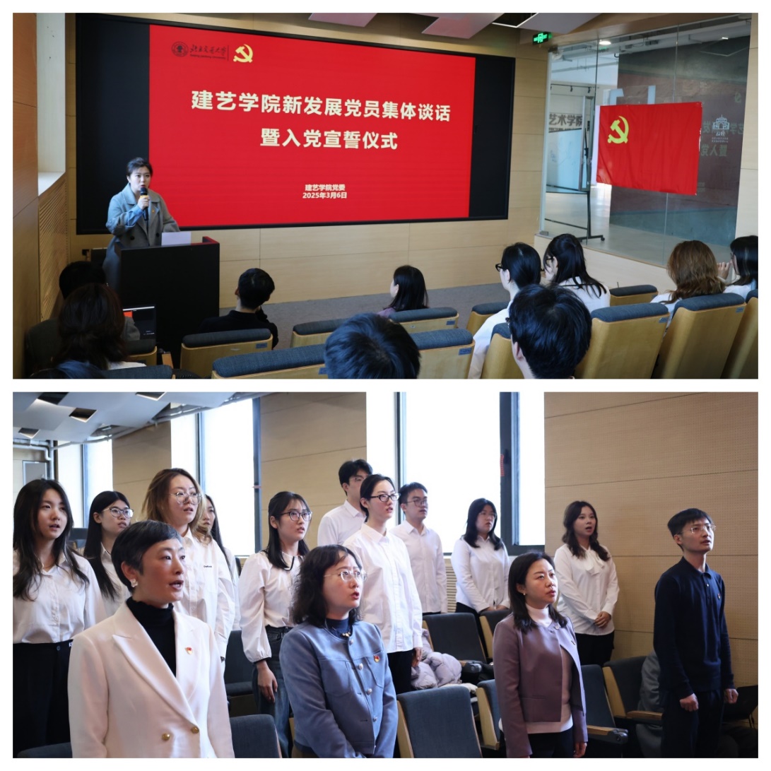 为进一步提高新发展党员对党的认识,加强党性教育,不断提高党员教育和培养质量,激励广大新发展党员坚定理想信念,牢记宗旨使命,2025年3月6日,建艺学院在学院一层报告厅举行新发展党员集体谈话暨入党宣誓仪式。学院党委书记秦思阳,北京市优秀共产党员、建筑系蒙小英教授,98堂 优秀共产党员、建筑系副主任李珺杰教授,学院党委专职组织员、学院学生工作组全体成员和学院 11名新发展党员参加了活动。活动由学院学工办主任张京主持。