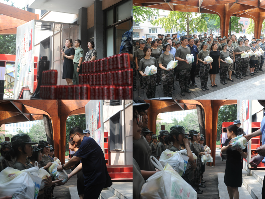 慰问现场,同学们步伐铿锵、口号嘹亮、斗志昂扬,充分展现了连日来的训练成效和良好的精神风貌。老师们为同学代表分发了学院精心准备的慰问物资和印有每个人姓名的专属饮料。
