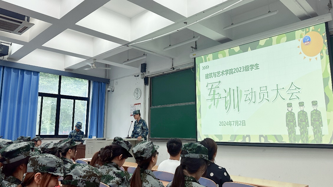 2024年7月2日上午,建艺学院在思源西楼106召开2023级本科生军训动员大会。建艺学院党委副书记刘萍,学工办主任张京,本科生辅导员董博宇以及2023级全体参训学生参加此次大会,会议由2024年军训辅导员助理李圣哲主持。