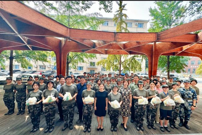 2025年9月4日上午,建艺学院在伞亭举行2025级学生军训慰问活动。建艺学院党委书记秦思阳,学工办主任张京,2025级本科生班主任万博,陈鹭,姚远,军训十二营带训教导员李昊霖、孙冬爱,本科生辅导员李圣哲在建艺楼前慰问军训师生。