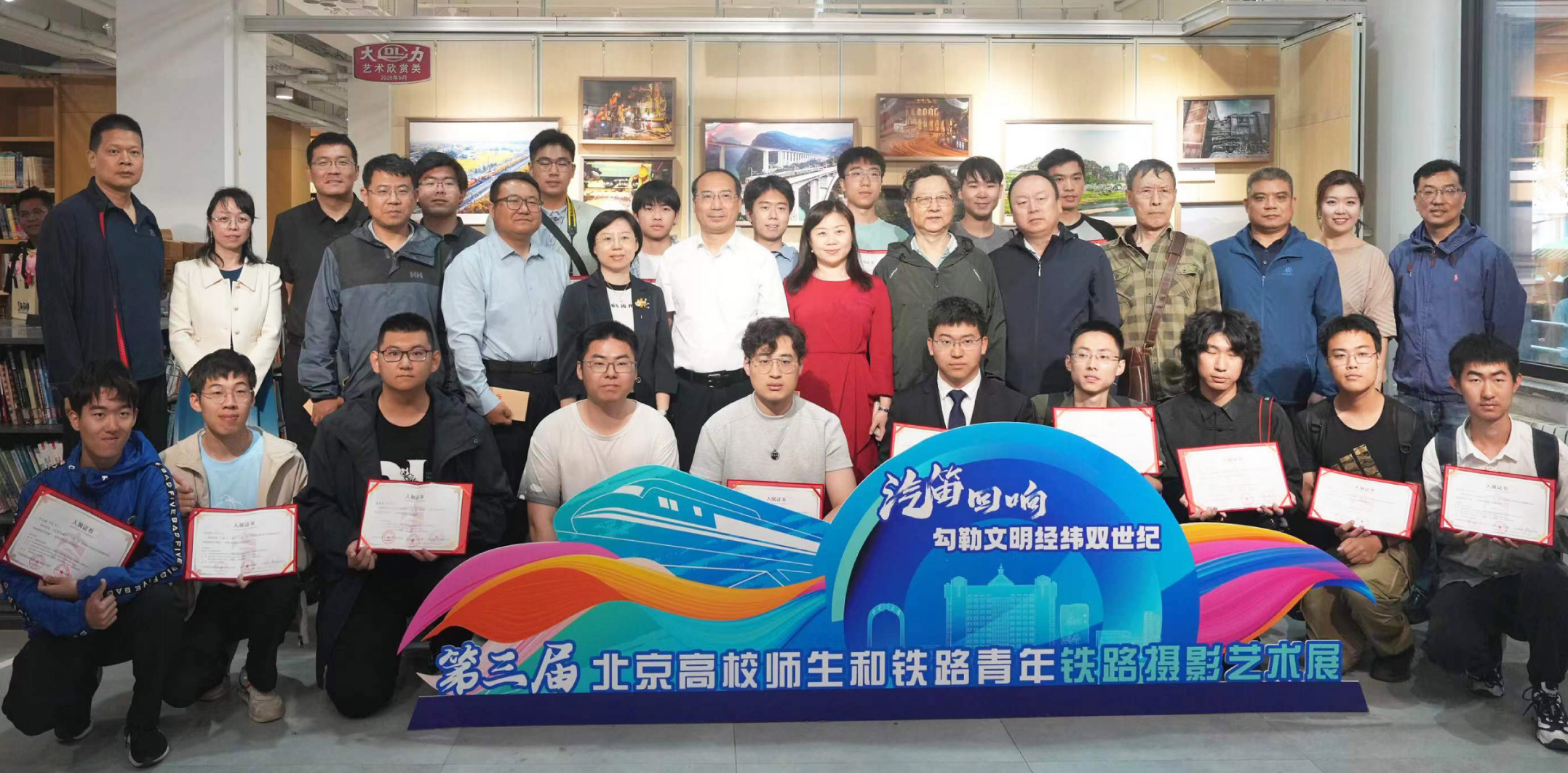 为深入学习贯彻党的二十大精神,传承和弘扬铁路文化及高铁精神,展示广大铁路爱好者的风采与行迹,2025年5月22日上午,“汽笛回响,勾勒文明经纬双世纪”第三届北京高校师生铁路摄影艺术展在98堂 第十四届创意文化节上开幕。校党委常委、副校长李国岫,中国铁道博物馆副馆长傅梅胜,《铁道知识》杂志社原社长兼主编魏宗燕,中国铁路摄影家协会副秘书长刘之光,詹天佑纪念馆原馆长史文义,铁路文化学者、《铁道知识》资深编辑罗春晓出席活动。